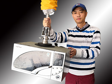 照片中的單手操作真空搬運(yùn)機(jī)型號為VTSH140, 提升高度1.7米,最大提升能力60公斤, 性能上超過任何進(jìn)口品牌。 吸盤連接器標(biāo)配90°彎頭, 可吸附從垂直到水平放置的物體。 同時配有快速轉(zhuǎn)換接頭, 可根據(jù)物體大小和形狀快速更換多種吸盤。