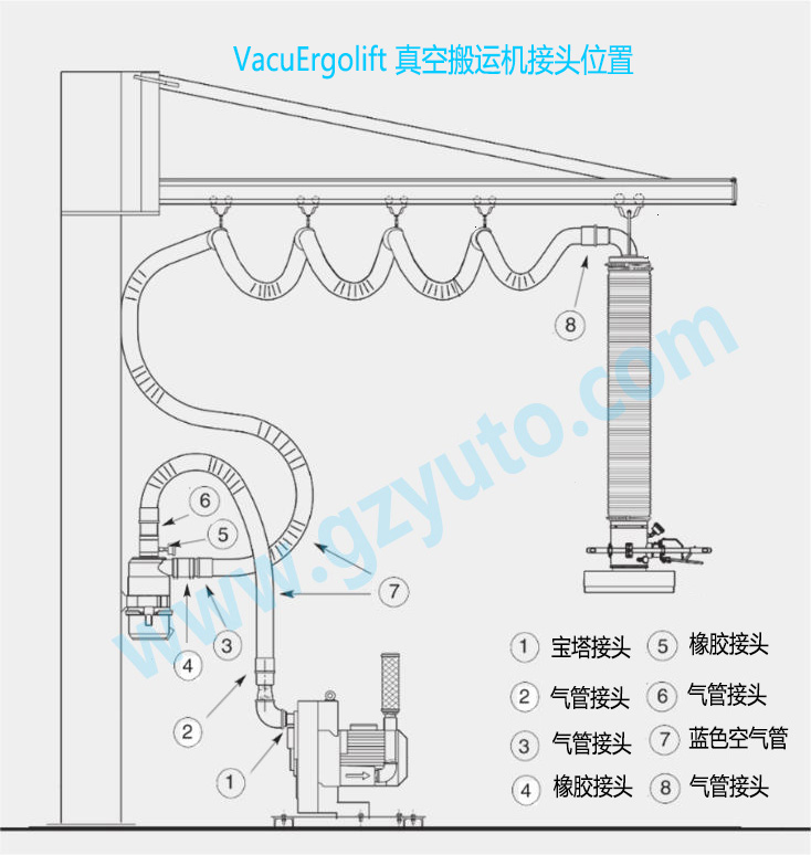 從寶塔接頭、空氣管兩端的橡膠接頭到過濾器上的橡膠接頭, 以及特制的適配器等等,我們所提供的這些配件能夠非常高效地將空氣管與提升管、真空泵和過濾器連接起來, 形成一個(gè)密閉的真空系統(tǒng)。所有配件都經(jīng)過嚴(yán)格挑選,不僅耐用,而且易于安裝, 進(jìn)而最大程度發(fā)揮了高流量真空系統(tǒng)的效率。系統(tǒng)效率越高, 吸盤單位面積上的吸力就越大。 在這些配件上多花一點(diǎn)小錢就能取代價(jià)格昂貴結(jié)構(gòu)復(fù)雜的高真空真空泵, 從而為客戶節(jié)省下更多的錢。只有設(shè)備買回來能夠穩(wěn)定持續(xù)地工作數(shù)年, 客戶才能從設(shè)備上不斷獲得收益。這正是廣州粵拓VacuErgolift(易施力)系列真空搬運(yùn)機(jī)的價(jià)值所在!